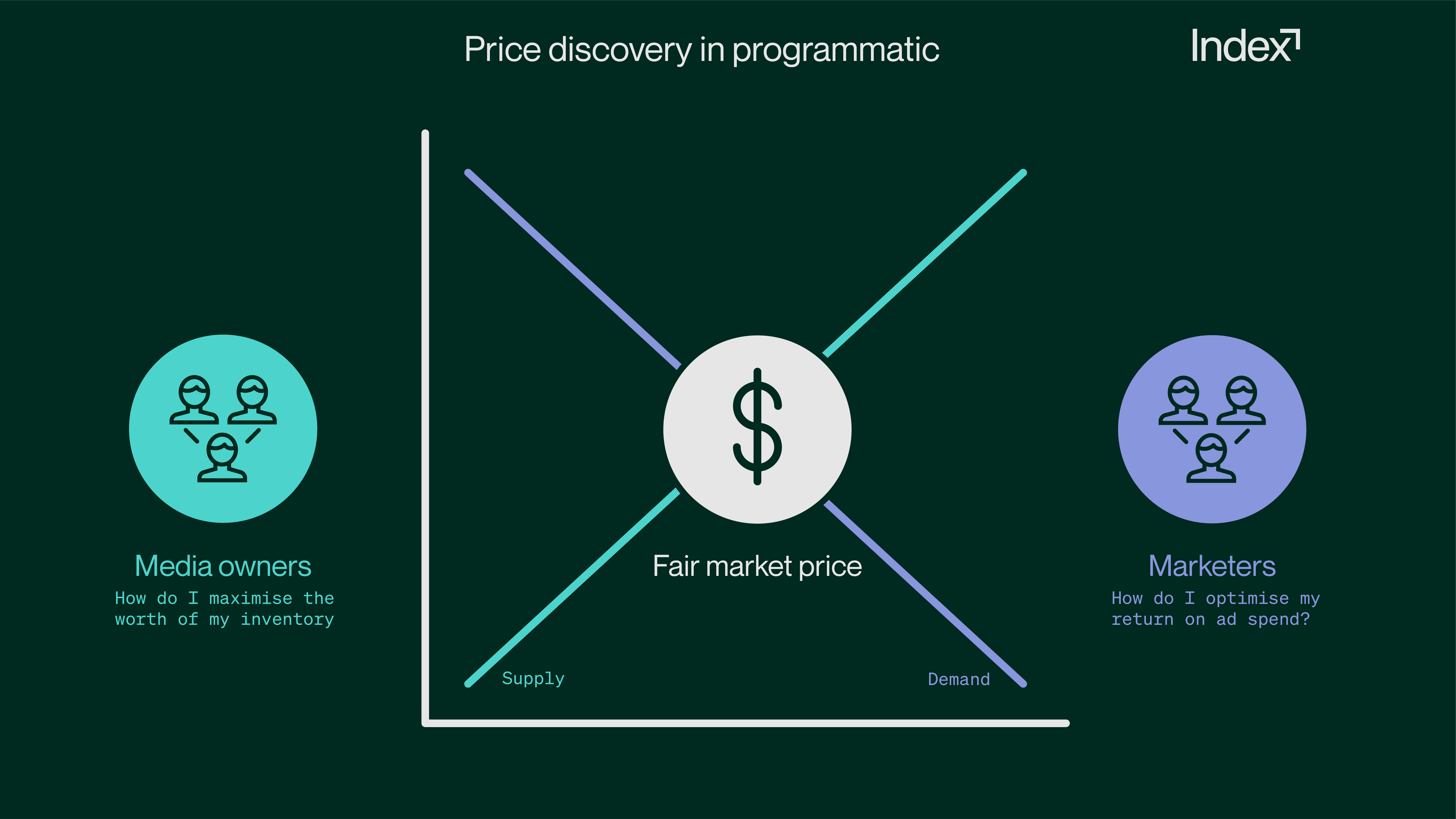 Because our marketplace hasn’t yet prioritised price discovery, programmatic today is governed (and held back) by asymmetric information. Marketers can’t always fully ascertain the true value of purchased media, and the competitive pricing dynamics behind it, to better optimise their return on ad spend. Conversely, media owners struggle to understand the worth of their inventory to maximise monetisation.